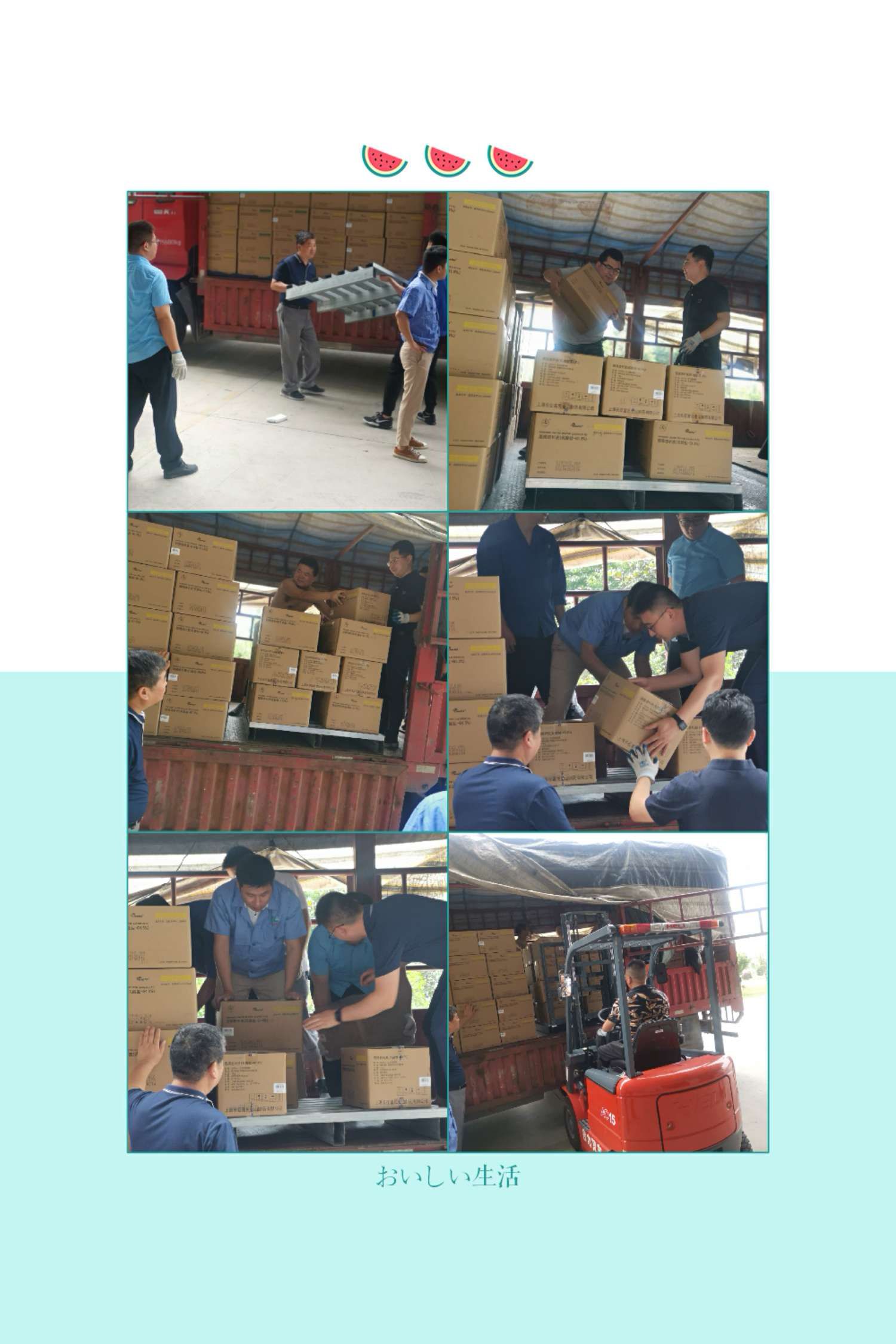 今天的氣溫很高,但大家齊心協力、團結一心的工作熱情更高。為了能及時高效的完成裝卸及配送任務,每個人都拼盡全力,灑下了辛勤的汗水。為大家點贊!